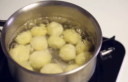 - 감자 으깨기: 먼저 삶은 감자를 적당한 크기로 으깨줍니다. 너무 곱게 으깨지 않고, 살짝 덩어리가 남아있게 하는 게 식감이 좋아요.