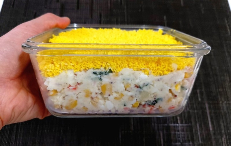 - 야채 준비: 양파, 오이, 당근, 옥수수, 삶은 달걀 등을 잘게 썰어 준비합니다. 오이는 물기를 빼주면 샐러드가 덜 묽어집니다.
