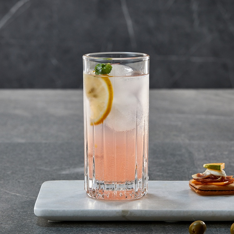- 긴 유리잔에 얼음을 가득 채웁니다. 이때 투명한 얼음을 사용하는 것이 좋습니다.