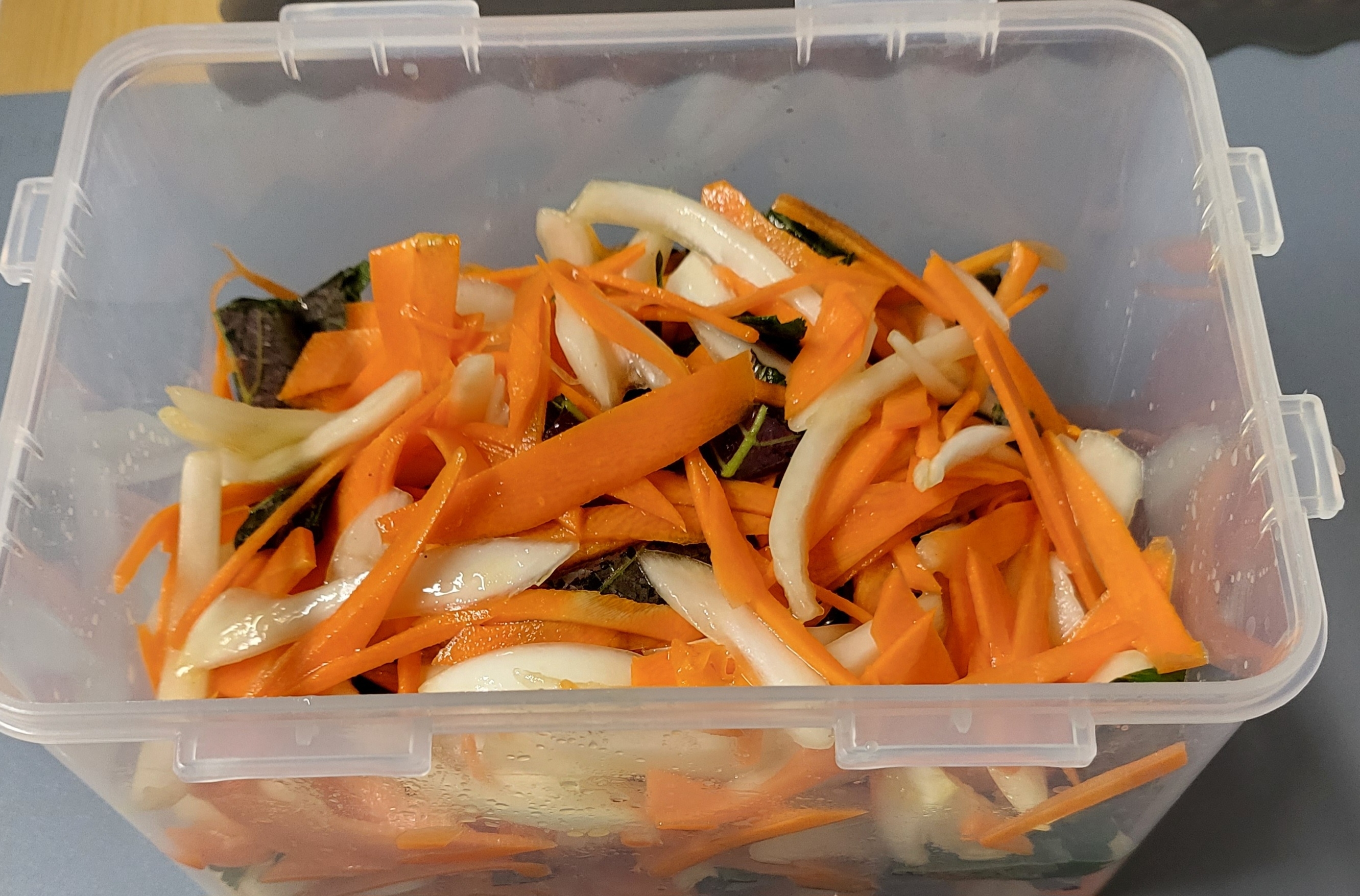 완성된 당근라페는 밀폐 용기에 넣어 냉장 보관하는 것이 좋습니다. 이렇게 하면 신선도를 오래 유지할 수 있습니다. 약 3일에서 5일 정도 신선하게 보관될 수 있으며, 먹기 전에 잘 섞어주는 것이 좋습니다.