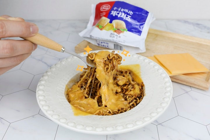 치즈를 추가하는 것도 좋은 아이디어입니다. 라면이 완성되기 직전에 치즈 한 장을 덮어주면 따뜻한 열기로 녹아들며 라멘의 풍미를 업그레이드 시켜줍니다.