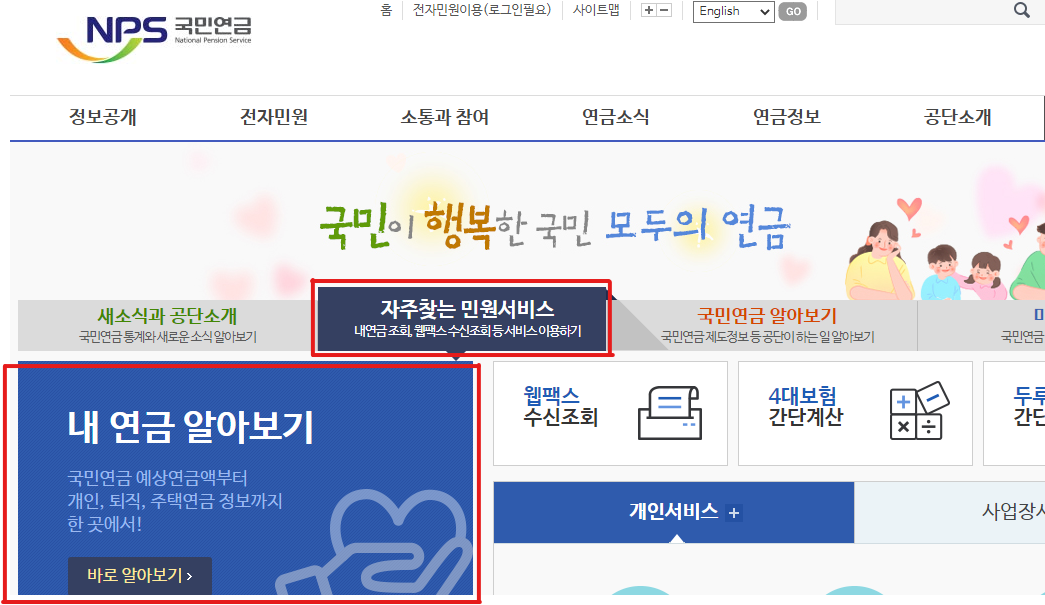 자주찾는 민원서비스 > 내연금 알아보기 로 들어갑니다.