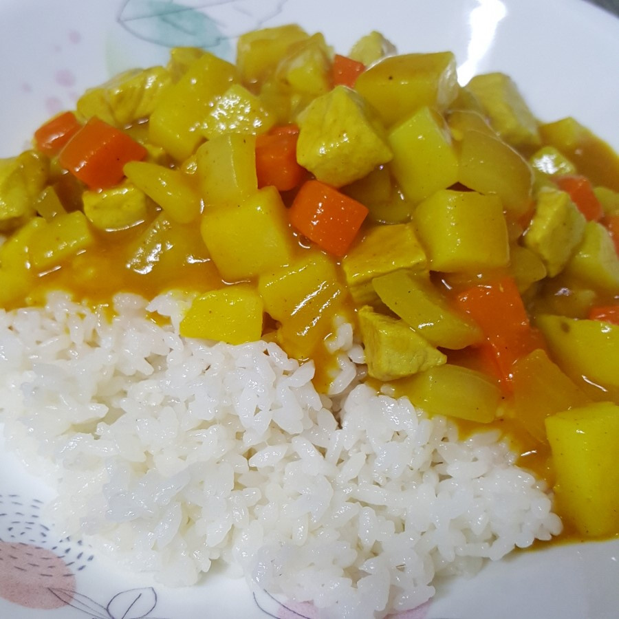 카레가 끓기 시작하면 약한 불로 오래 끓여주는 것이 맛을 더해줍니다. 이렇게 하면 고기와 야채가 부드럽게 익어 카레의 농도와 깊이가 좋아집니다.