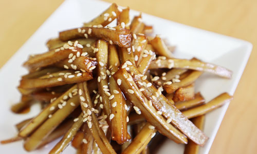 양념을 만들 때는 모든 재료를 섞은 후 한 번에 사용하지 말고, 우엉의 양과 맛을 보면서 조금씩 가감하는 것이 중요합니다. 또한, 조림 과정을 통해 간이 잘 배도록 중간 중간 불의 세기를 조절하여주세요.