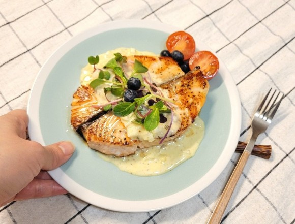 기호에 따라서는 크림이나 머스타드 소스를 곁들여 더욱 풍성한 맛을 연출할 수 있습니다. 그러나 소스의 맛이 지나치게 강해지지 않도록 양을 조절하며, 연어 본연의 맛을 강조해야 합니다.
