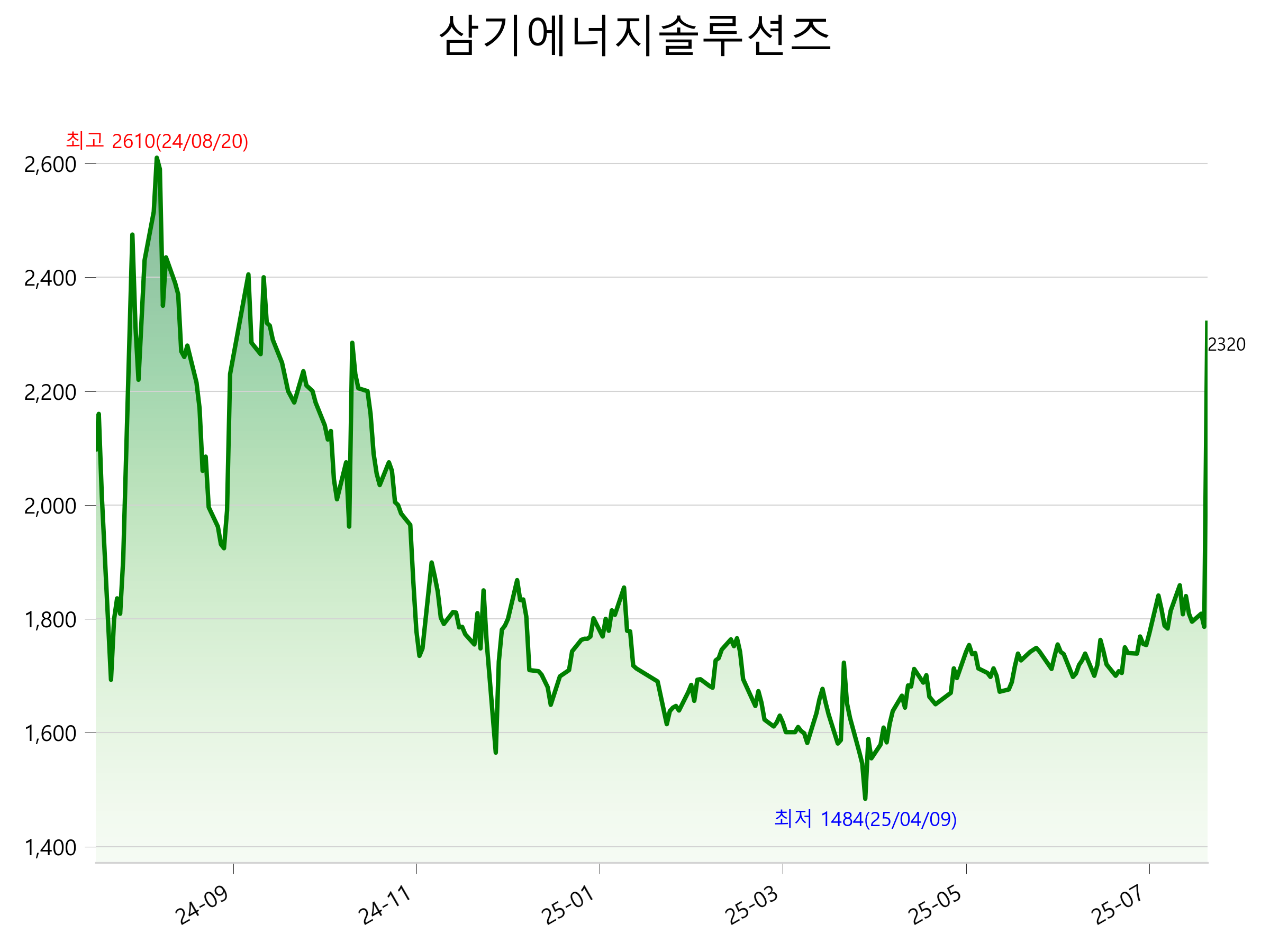 7월 30일 기준 주가는 2,320원 입니다. 아래는 최근 1년간의 주가흐름입니다.